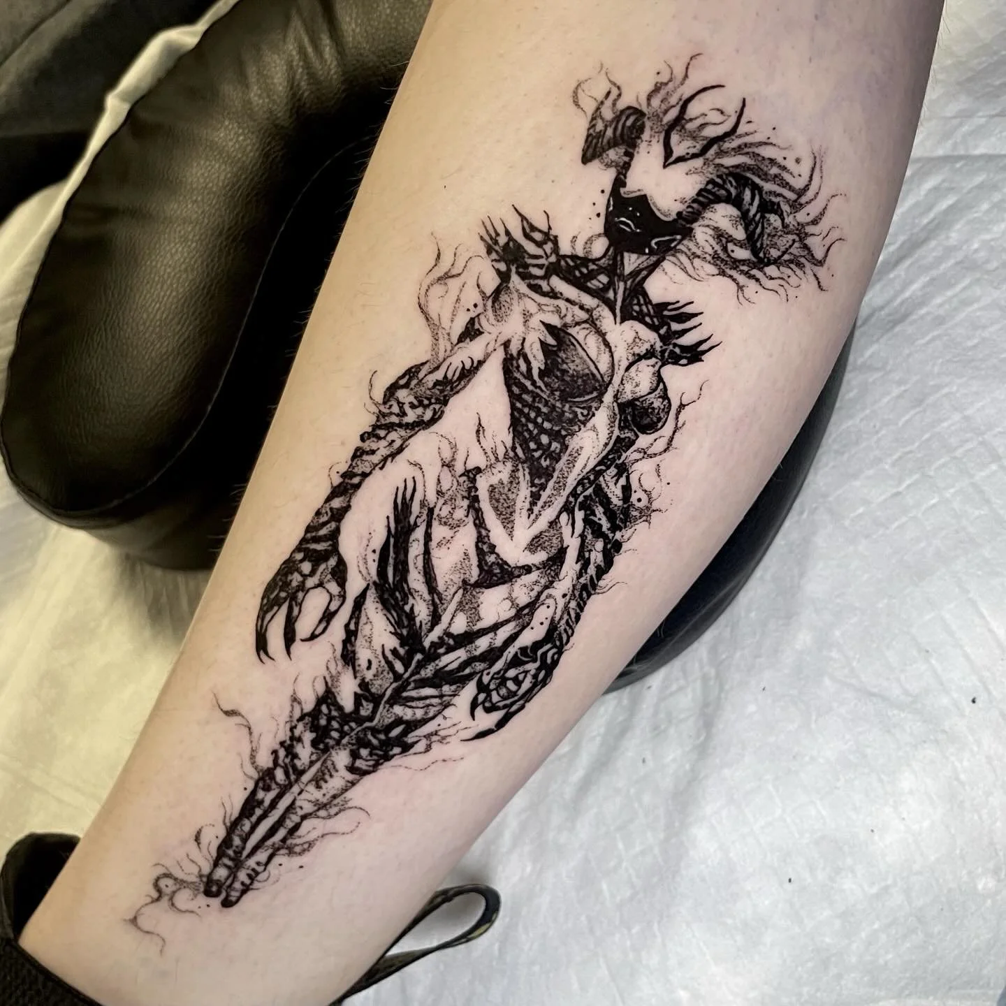 View fullsize In love with this piece I just got to tattoo for my client's spooky/fantasy/nature themed leg sleeve!